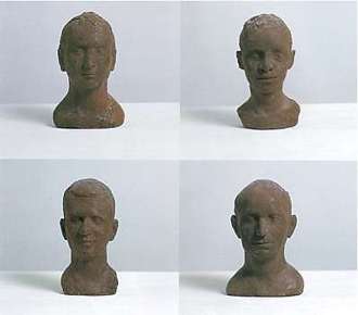 Almut Heer: Vier Portraits von Freunden, 1995, Terrakotta, Höhe je 24 cm