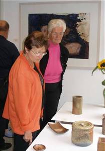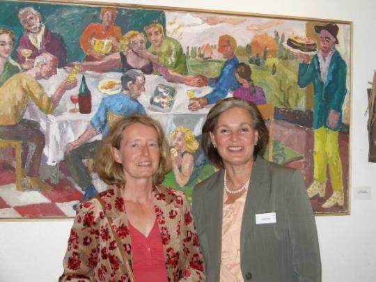 Meike Lipp und Franziska Neubecker (vor: Festessen Öl auf Leinwand 85 x 200 cm 2005)